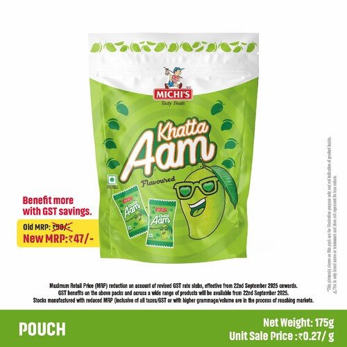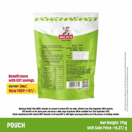 Enjoy a tangy treat with Michi’s Khatta Aam Candy – the perfect mix of sour raw mango and sweet delight. Every bite brings the mouth-watering flavour of unripe mango, giving you a tasty twist that’s bold, fun, and full of nostalgia. It’s the same khatta aam magic you loved as a kid – now back to brighten your day.