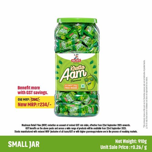 SMALL JAR875g + *35g FREE = 910g[(250 + *10Pcs FREE = 260Pcs) x 3.5 g EACH]250